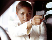 And I can't forget Gabrielle Union. Not only is she one sexy ass saucydame *wink* She was repping the Tupac "Me and My Girlfriend" thing to the fullest when she's driving the black jeep with one door knocked off, and busting guns in a white pant suit and rocking a ponytail. How's that for contrast?